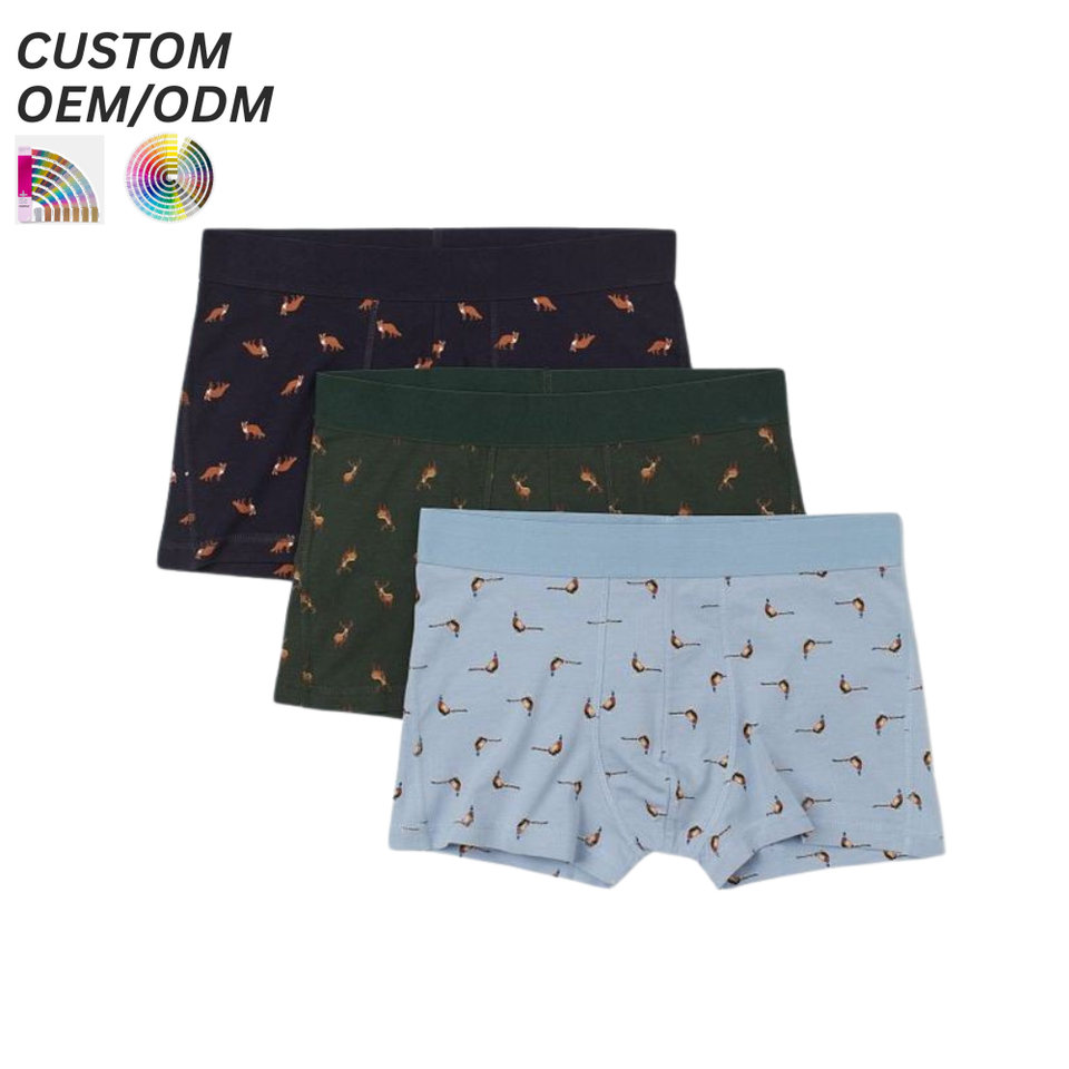 Mens Cotton Underwear Boxer Shorts Mid-Rise Casual Fit Breathable Anti-Bacterial Elastic Waist Custom Logo OEM ODM Support