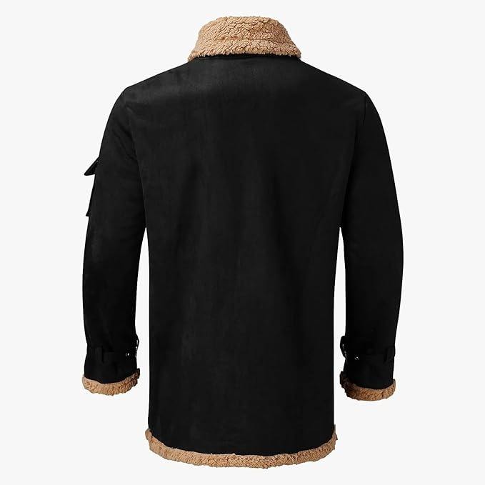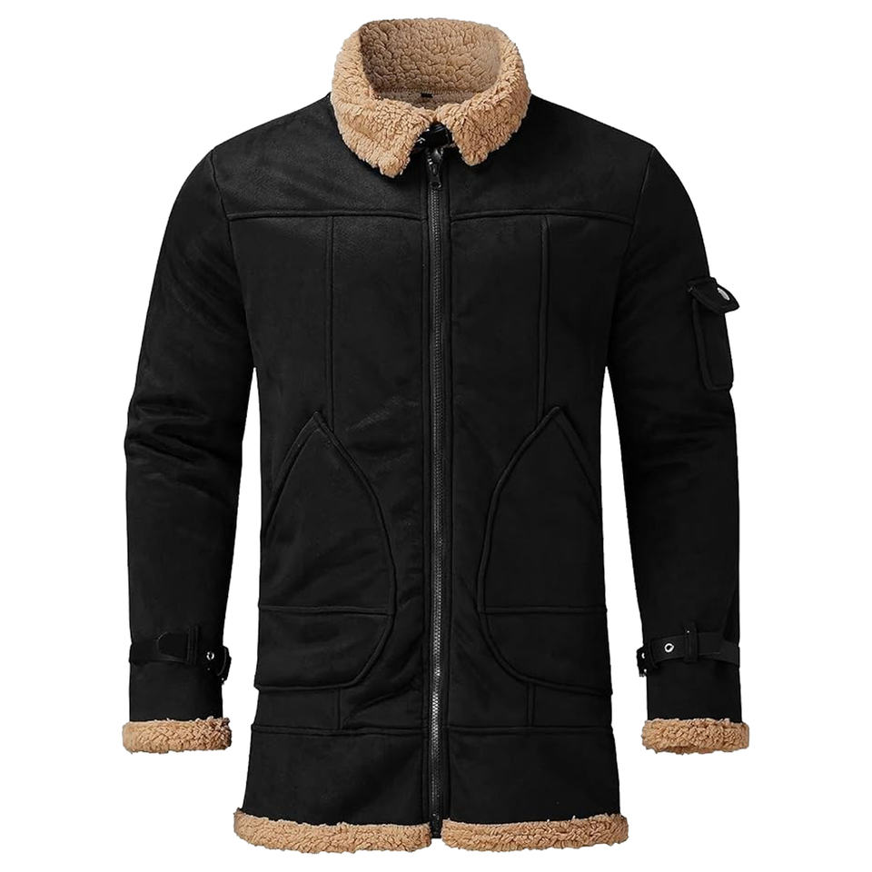 Mens Cow Skin Lined Canvas Winter Warm Fur Collar Cuffs Stylish Bomber Jacket Front Customizable