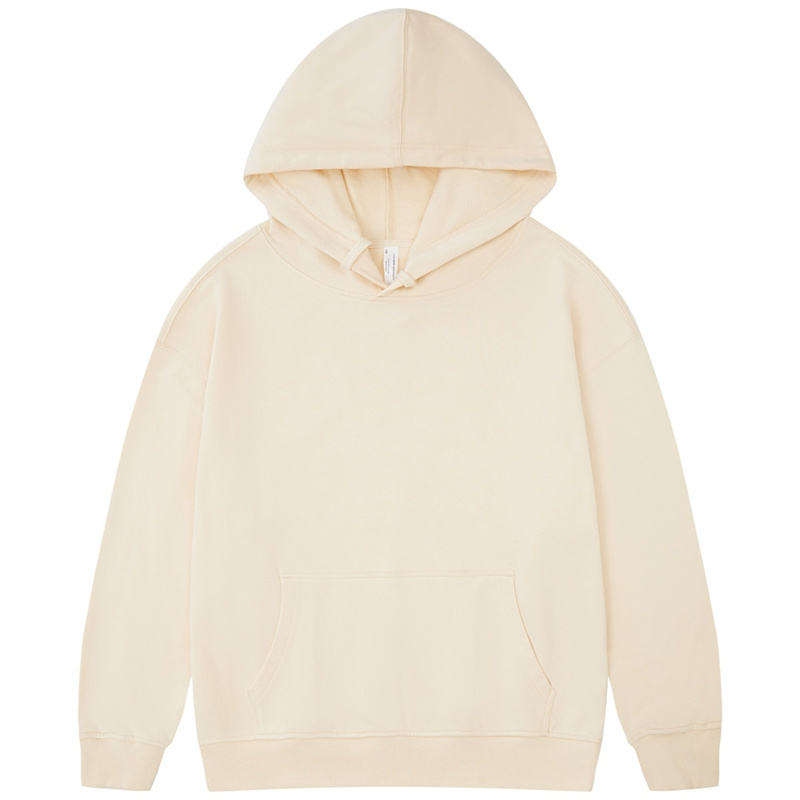 Mens Cream Beige Hoodie Plain Pullover Soft Fleece Warm Casual Comfortable Long Sleeve Hooded Sweatshirt Basic Style Everyday