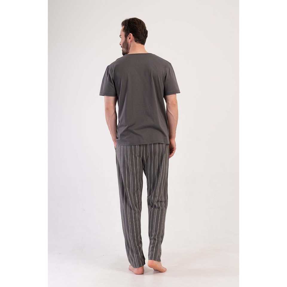 Mens Crew Neck Short-Sleeve Pajama Set with Pockets Home Wear Silk and Cotton Robe Set Custom Logo Printed Fabric