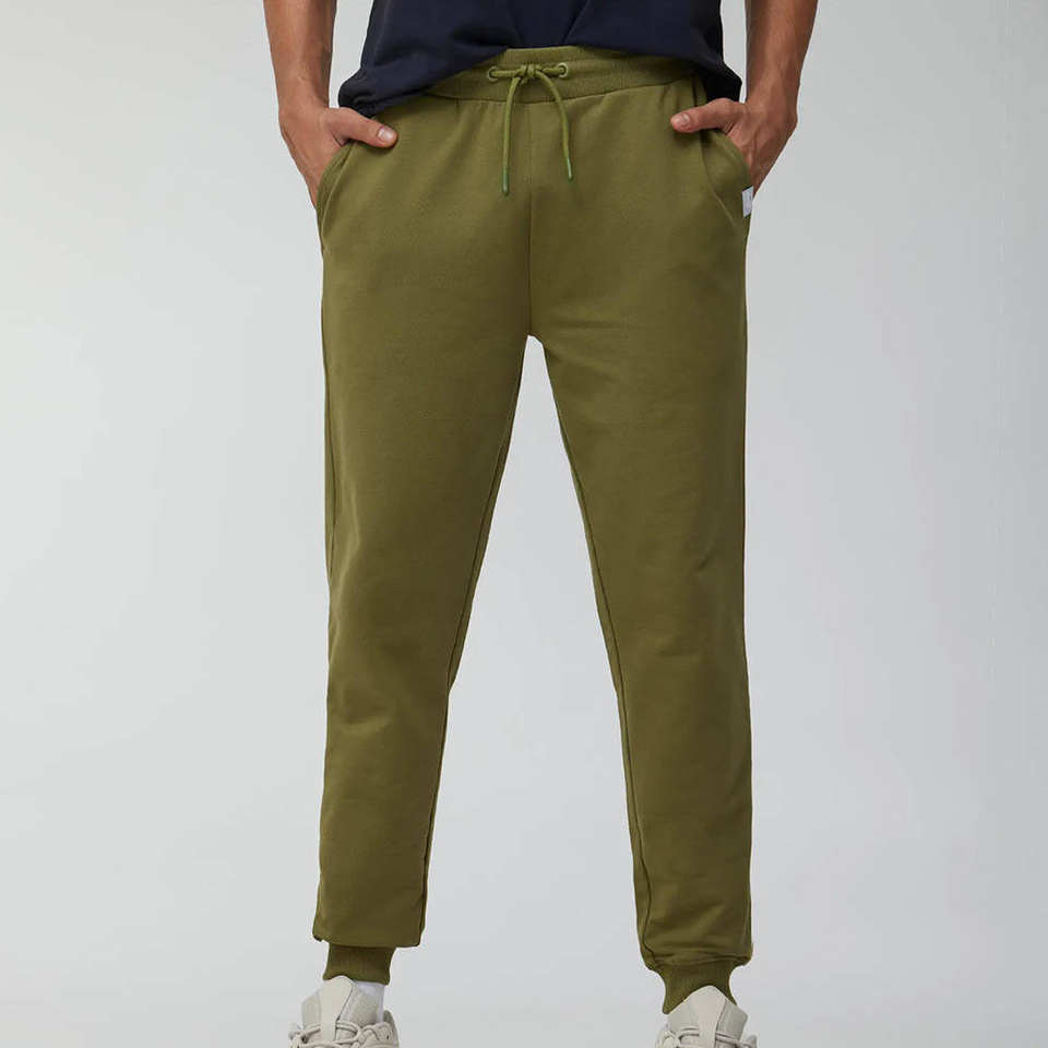 Mens Custom Logo Olive Green Jogger Cotton Blend Washed Joggers Breathable Ribbed Pants and Trouser Wholesale Factory