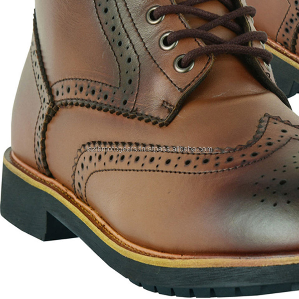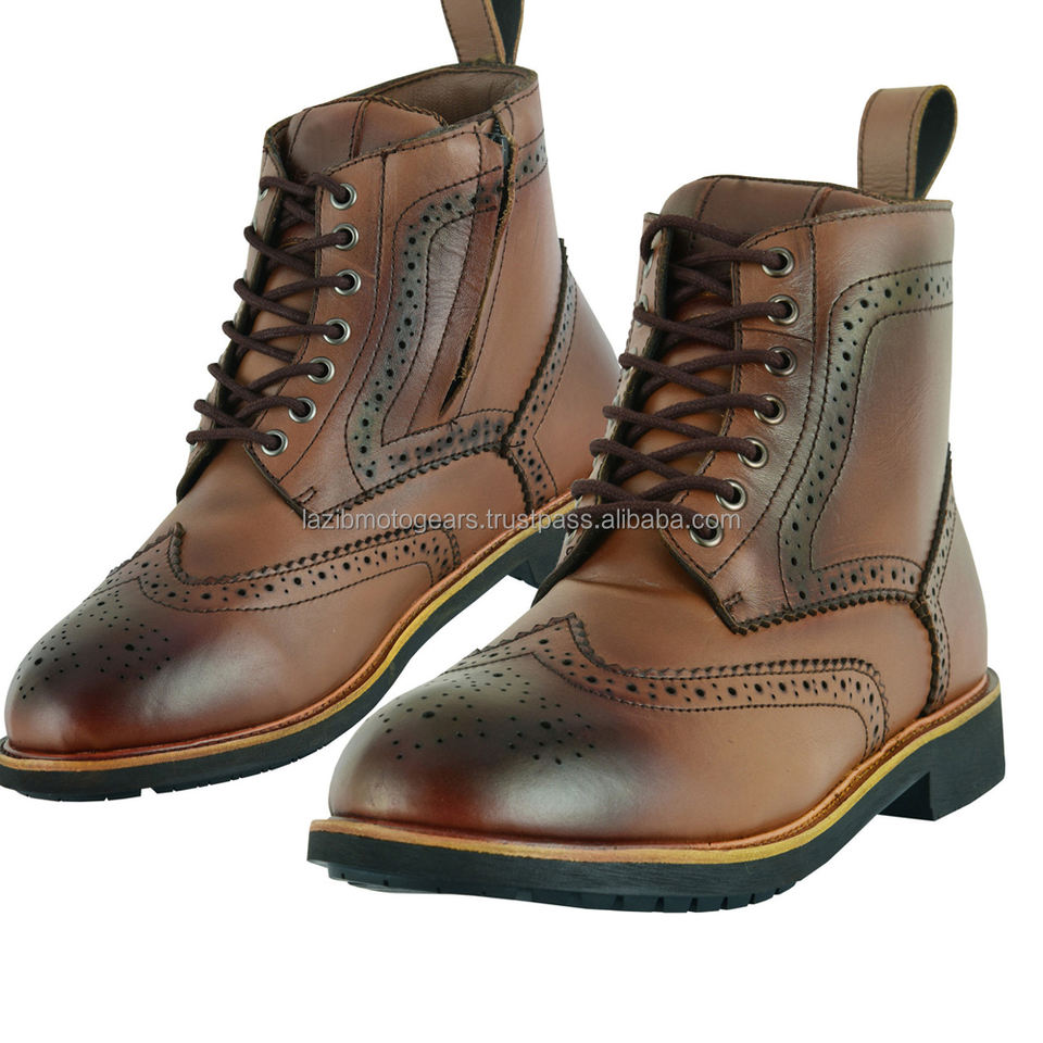 Mens Custom Wholesale Breathable Genuine Cowhide Waxed Leather Motorcycle Casual Safety Shoes Motorbike Leather Racing Boots