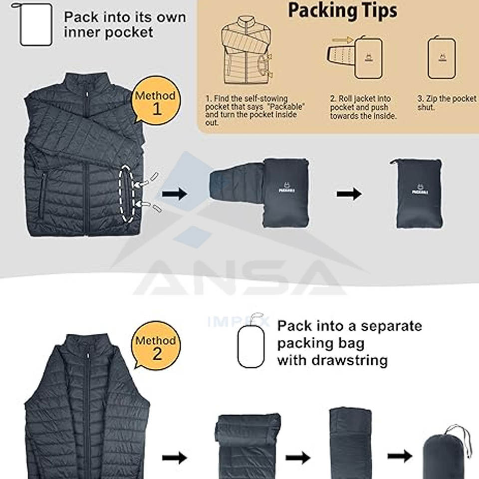 Mens Customizable Packable Puffer Jacket Hot Selling Winter Insulated Coat Elastic Hem Cuffs OEM Wholesale Factory Supplier