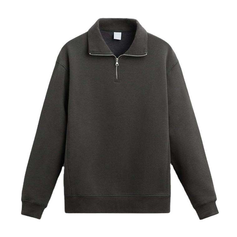 Mens Dark Grey Half Zip Fleece Sweatshirt Warm Winter Pullover Soft Casual Long Sleeve Minimal Fashion Top