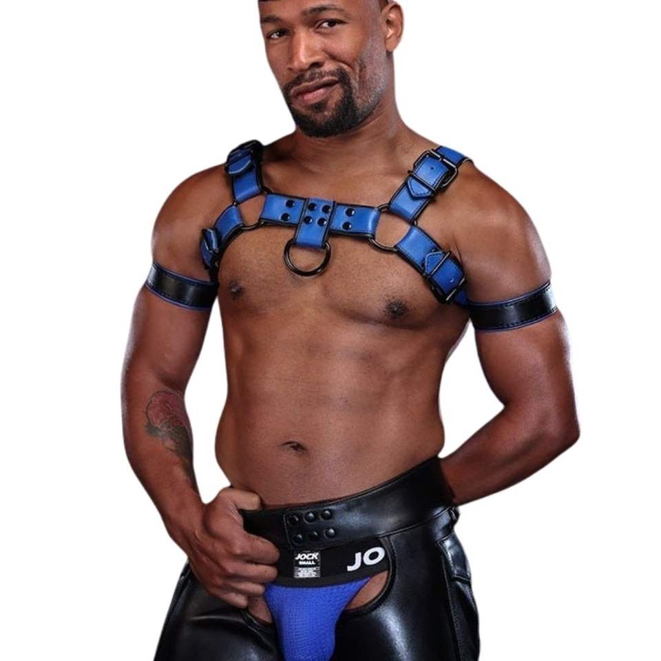 Mens Dark Room Bulldog Leather Harness Blue Adjustable Chest Straps Premium Leather Club Wear