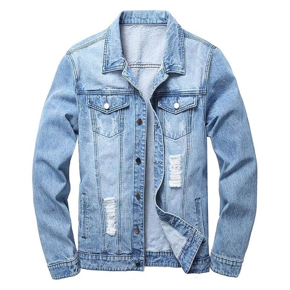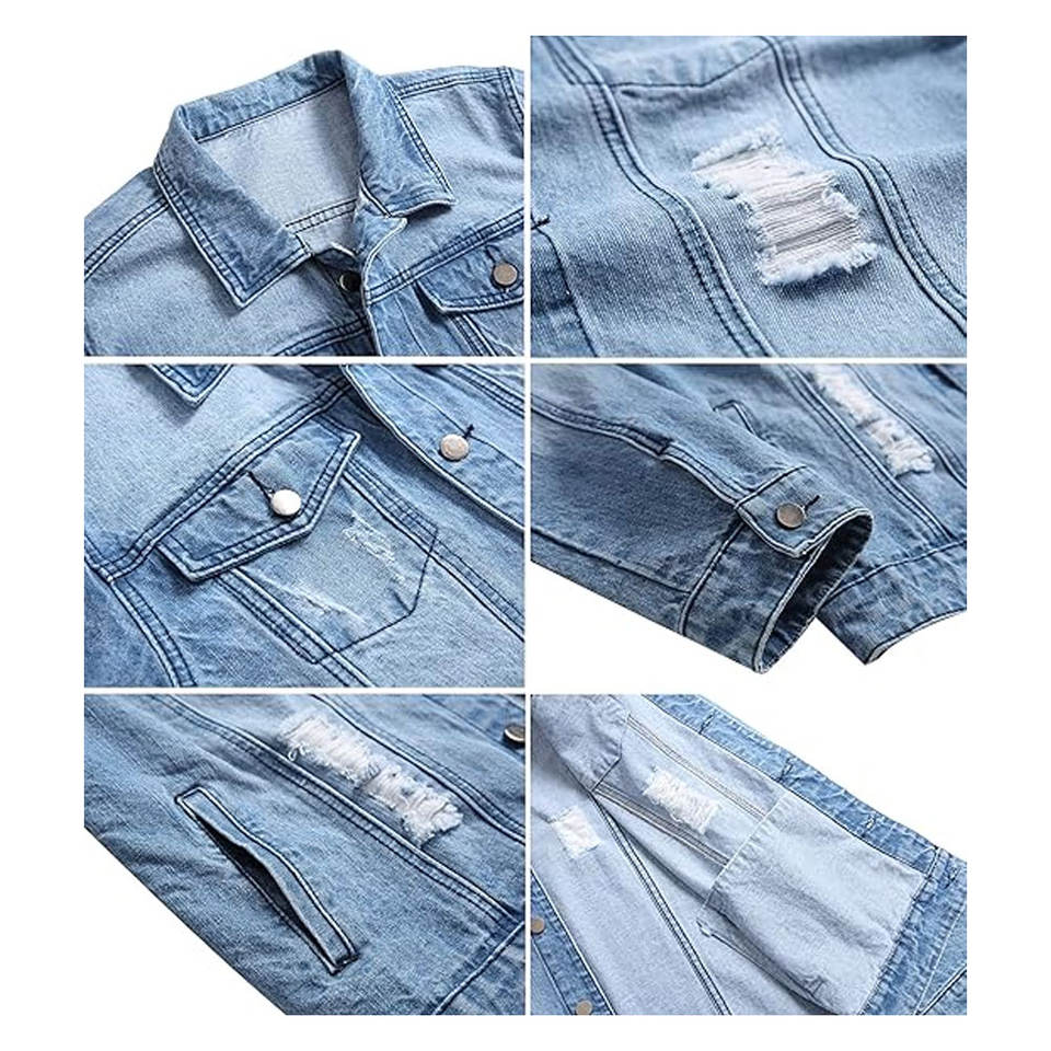Mens Denim Jacket Ripped Slim Fit Jean Jacket Coat Stylish Distressed Casual Streetwear Fashion Outerwear for Men