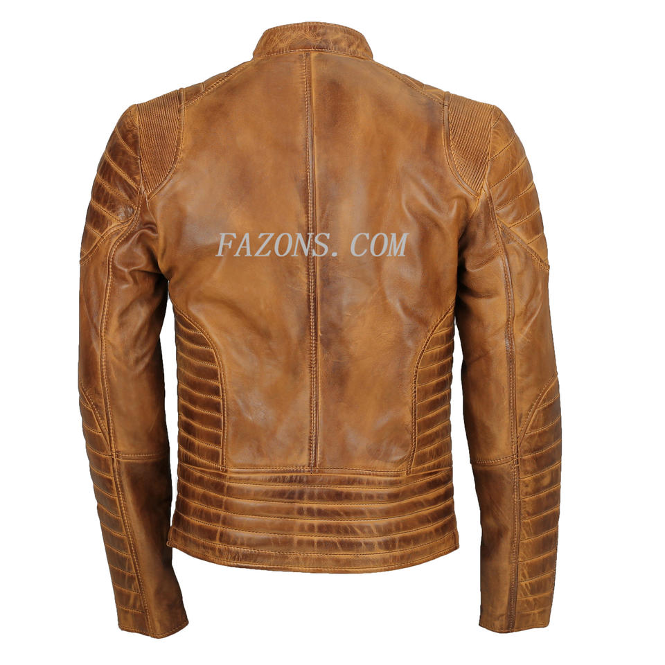 Mens Distressed Biker Quilted Motorcycle Cafe Racer Retro Moto Leather Jacket Real Genuine Leather Racing Motorbike Jacket OEM