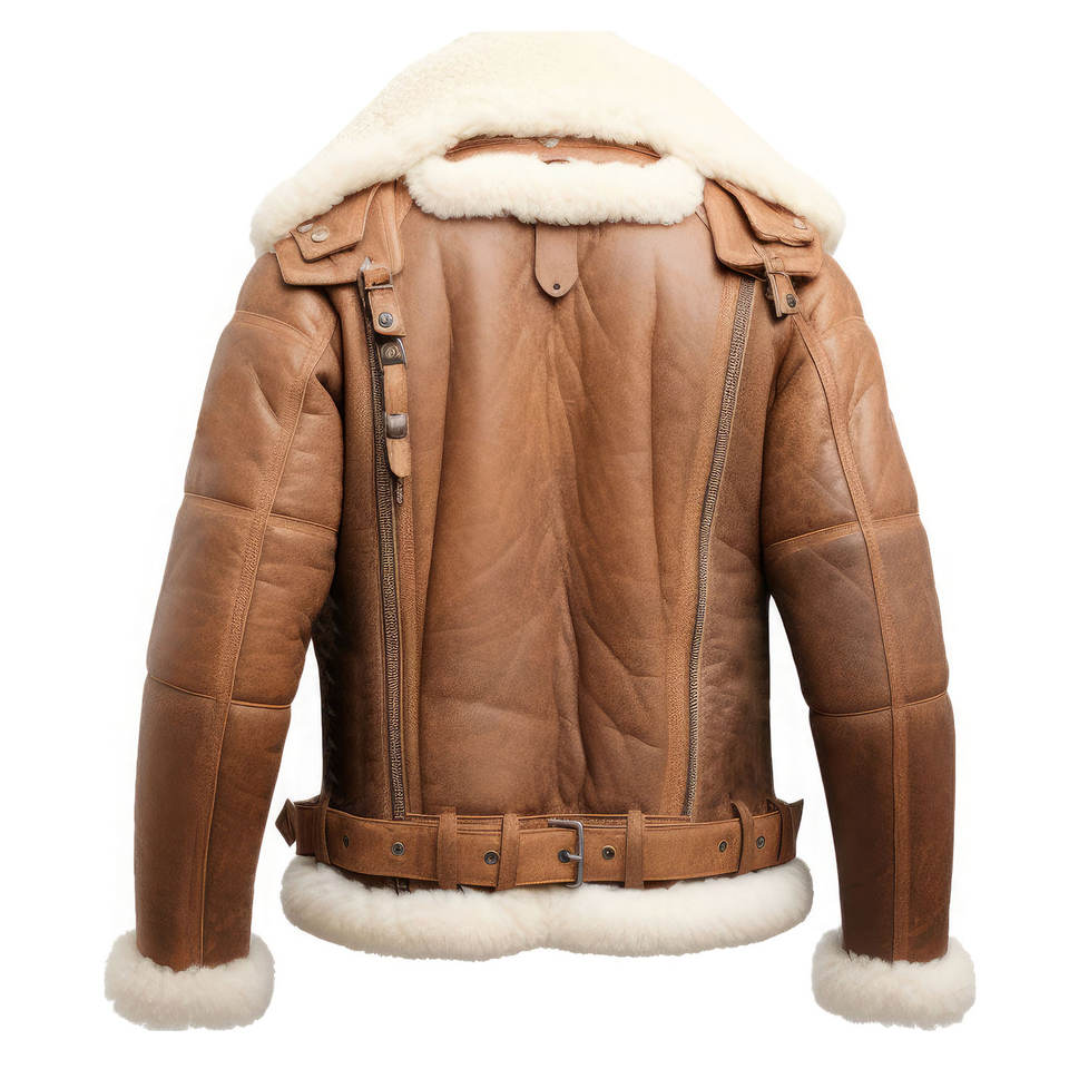 Mens Distressed Brown Genuine Sheepskin Sherpa Shearling Faux Fur Lined Avi - ator Outfit Multizipper Bom - ber Leather Jacket