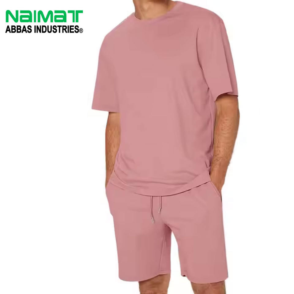 Mens Dusty Pink Summer Shorts Set Casual Short Sleeve Cotton T Shirt and Drawstring Shorts Tracksuit Breathable Apparel