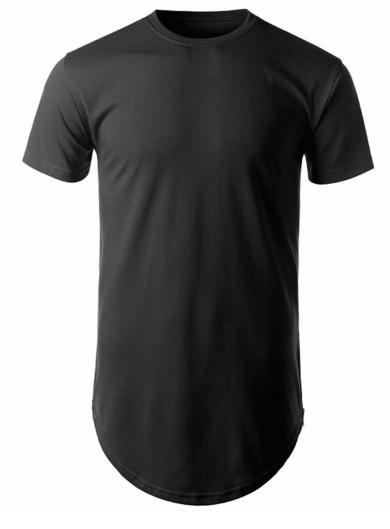 Men's XL Size 100% Cotton Muscle T-Shirt Oversized Plain Dyed Long Sleeved Scoop Neck With Rounded Bottom Curved Him Print