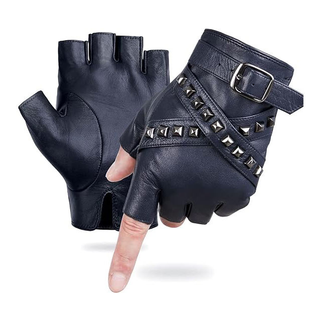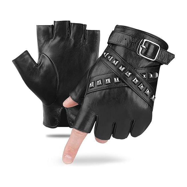 Mens Fingerless Leather Gloves Half Finger Sheepskin Style For Punk Fashion Driving And Motorcycle Riding Use