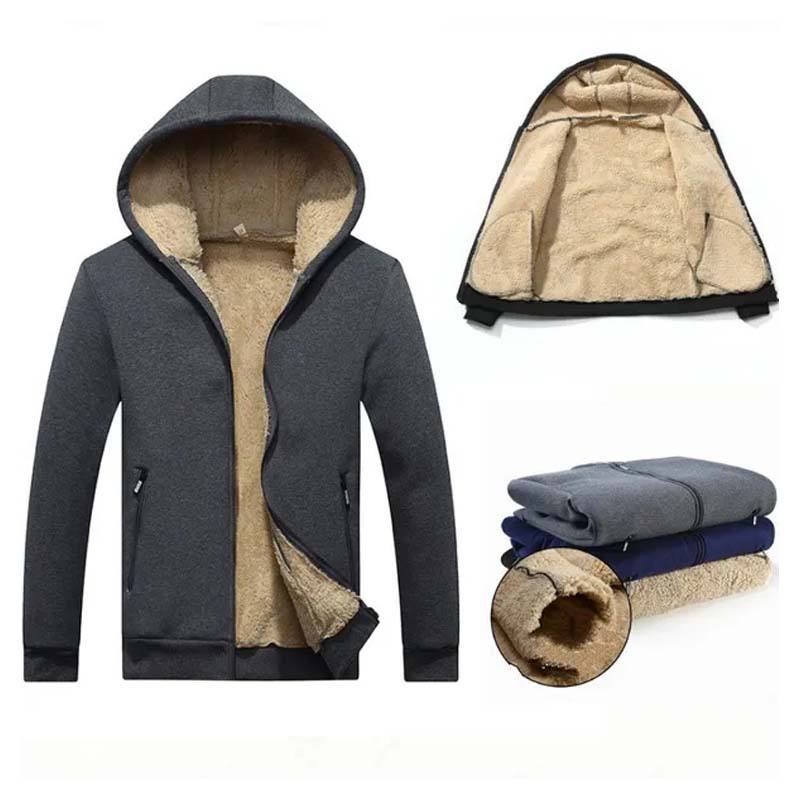 Mens Fleece Hoodies Sherpa Lining Coats Windproof Warm Sweatshirts Full Zip Outwear Hiking Jacket