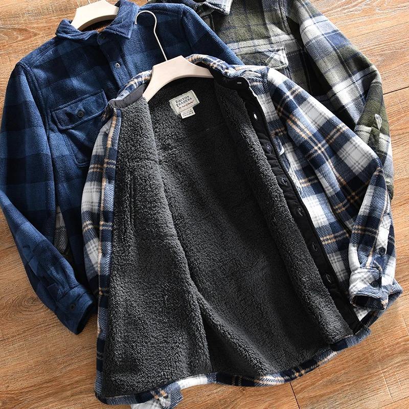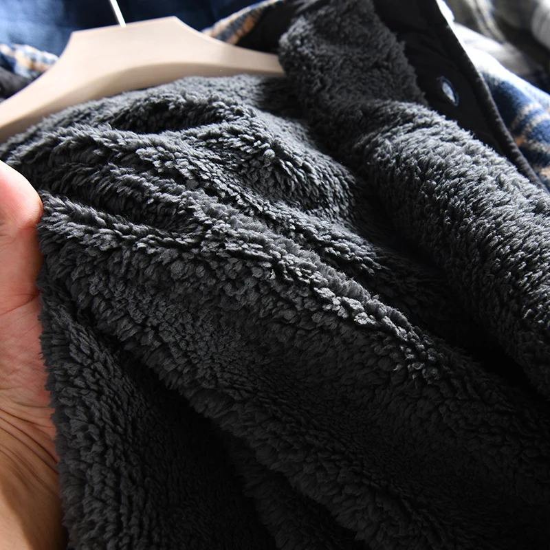 Mens Fleece Plaid Shirts Jacket Winter Casual Long Sleeve Flannel Shirt Men Vintage Shirt Button Up motorcycle style jacket
