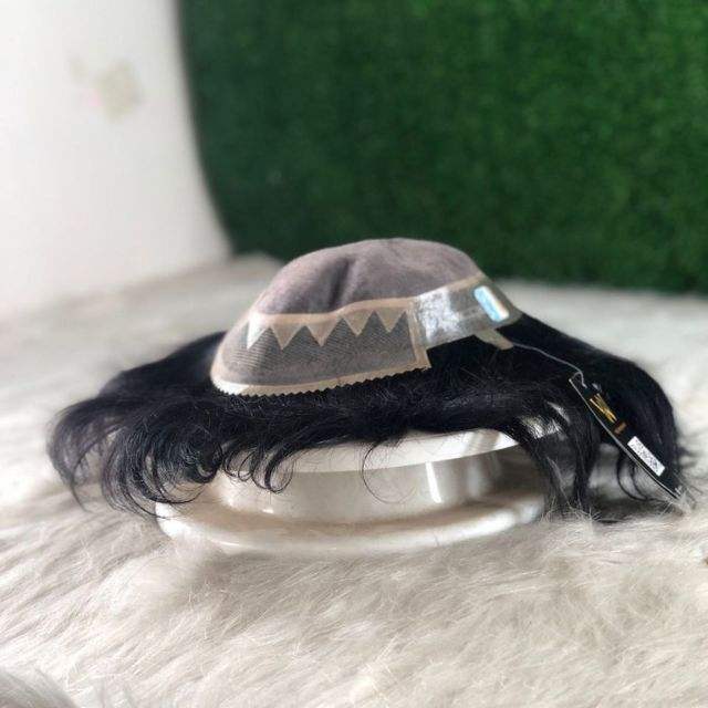 Mens French Lace Mono Four Hole Hair System with Zigzag Wholesale Deep Wave Style Indian Remy Hair Front Front Closure