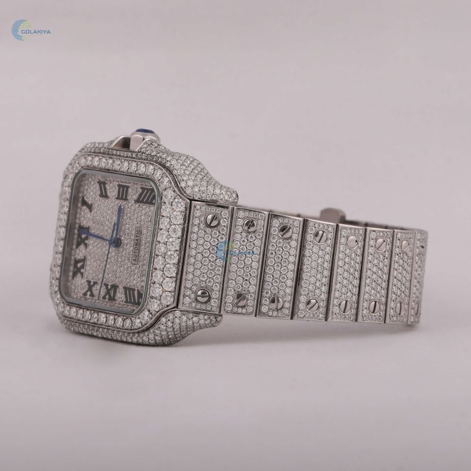 Mens Full Iced Out Bling Watch Lab Grown Diamond Elegant Watch Black Roman Numerals Hip Hop Style Statement Wristwatch