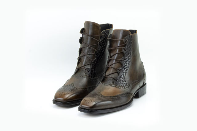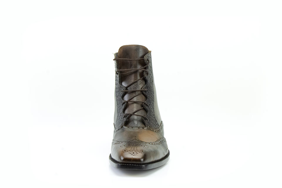 Mens Genuine Leather Brogue Ankle Boots Crocodile Embossed Lace Up Wingtip Dress Boots Luxury Men’s Classic Leather Formal Shoes
