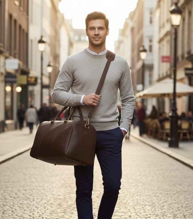 Mens Genuine Leather Luxury Foldable Duffle Bag Brown Weekender Travel Overnight Luggage Gym Sports Tote Carry on Large Vintage