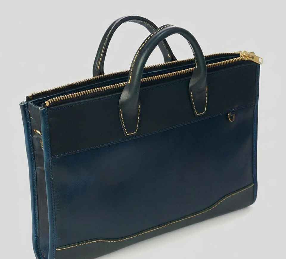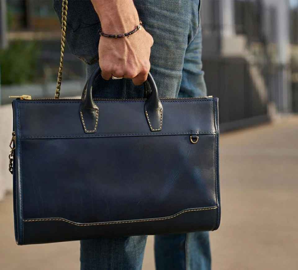Mens Genuine Leather Vintage Fashion Slim Laptop Briefcase Business Work Satchel with Luxury Design