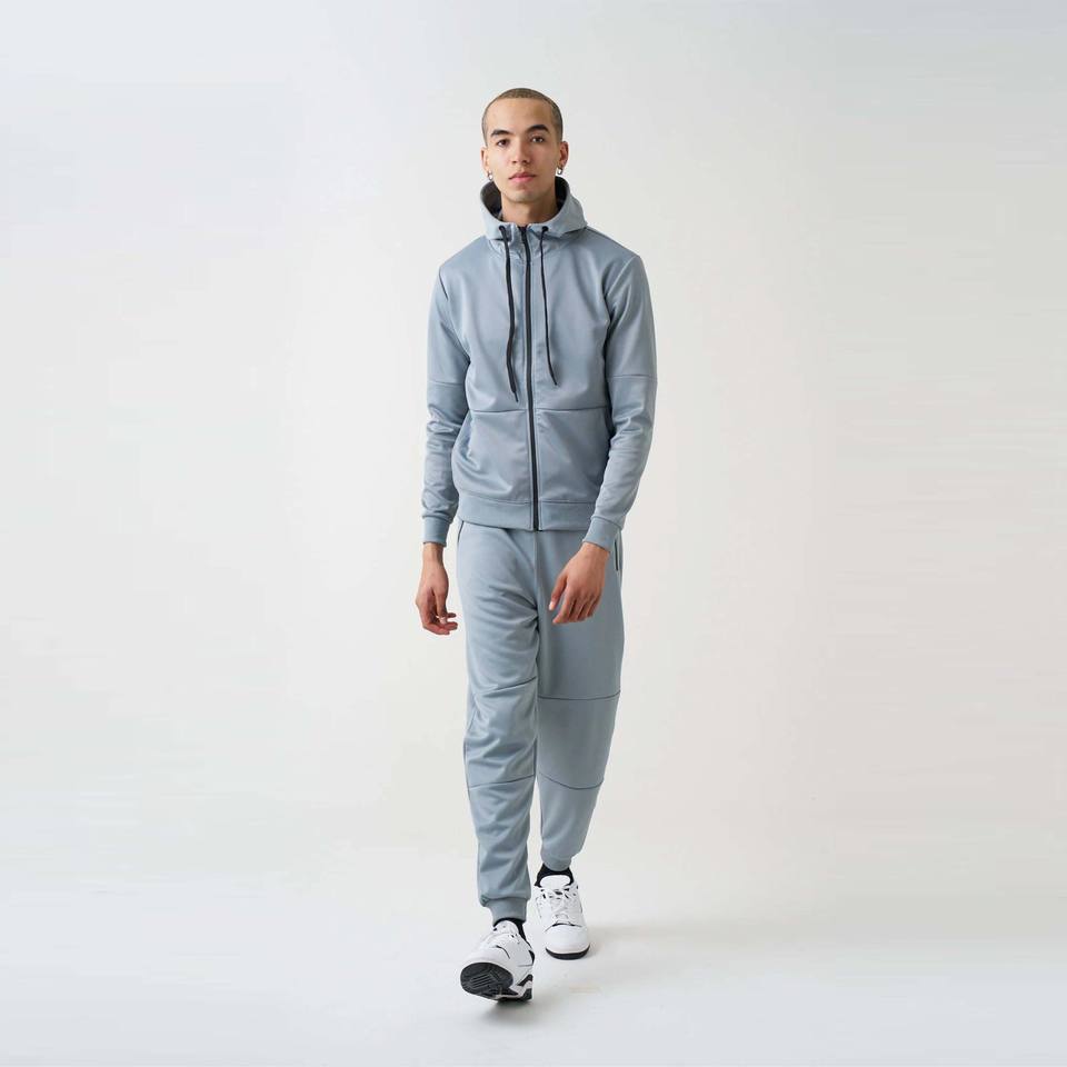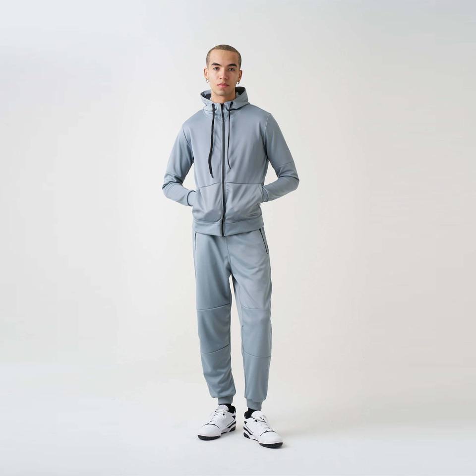 Mens Gray Tech Fleece Jogger Set - High-Performance Tracksuit for Fitness Training, Casual Outfits, and Comfortable Travel Wear