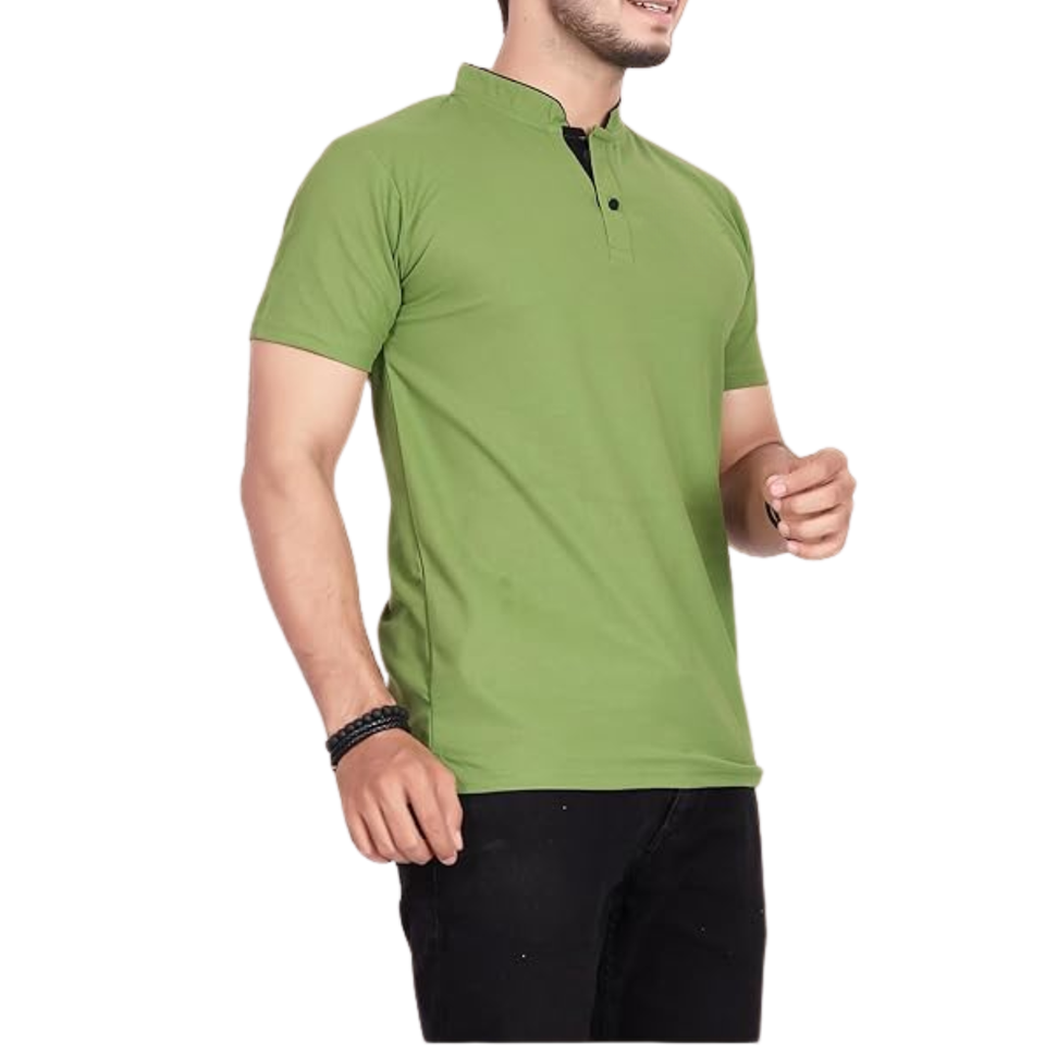 Mens Green Polo Shirt with Stand Collar Stylish Short Sleeve Casual TShirt Premium Quality Comfortable Fit for Active Wear