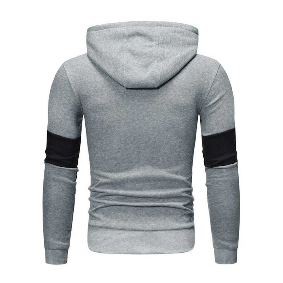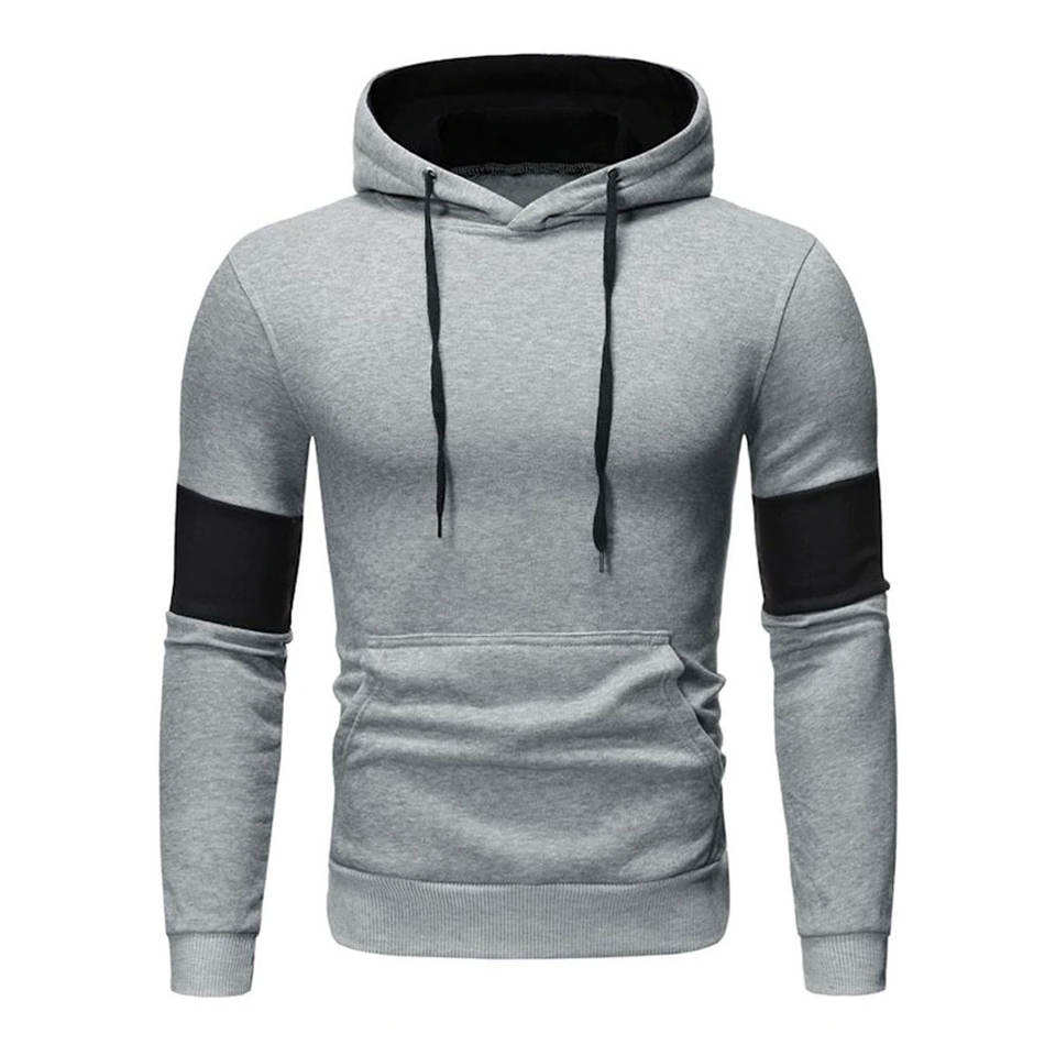 Mens Grey Hoodie with Black Arm Patch Stylish Slim Fit Pullover Sweatshirt Soft Warm Casual Winter Wear with Front Pocket