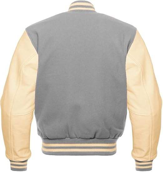 Mens Grey Wool blend and Leather Sleeves Light Weight Varsity Jacket Letterman Rib Knitting Bomber