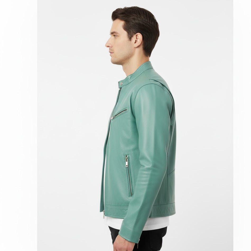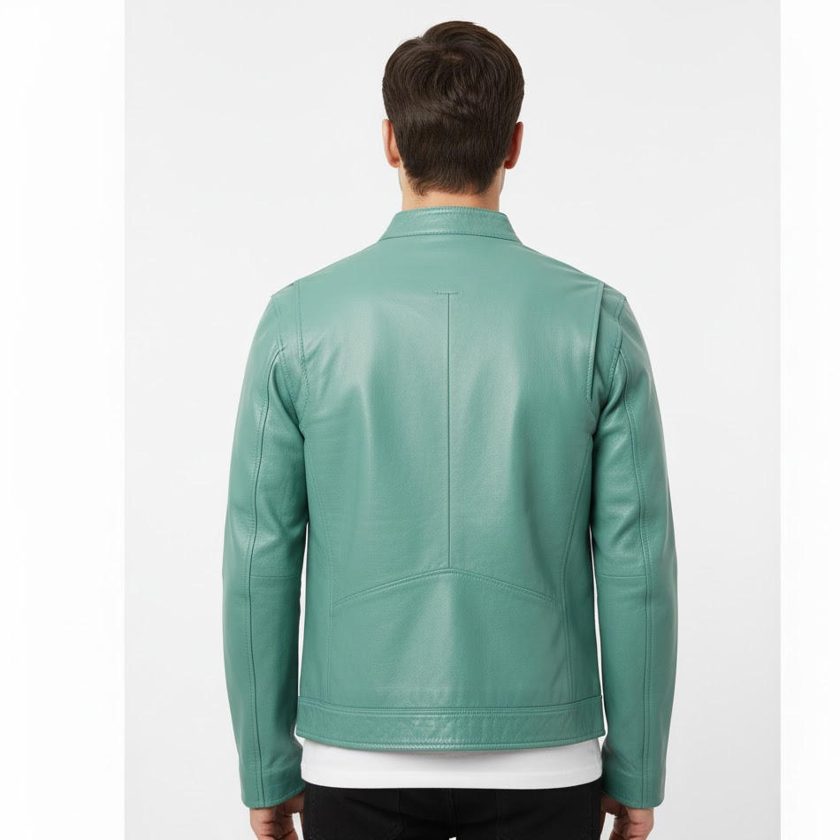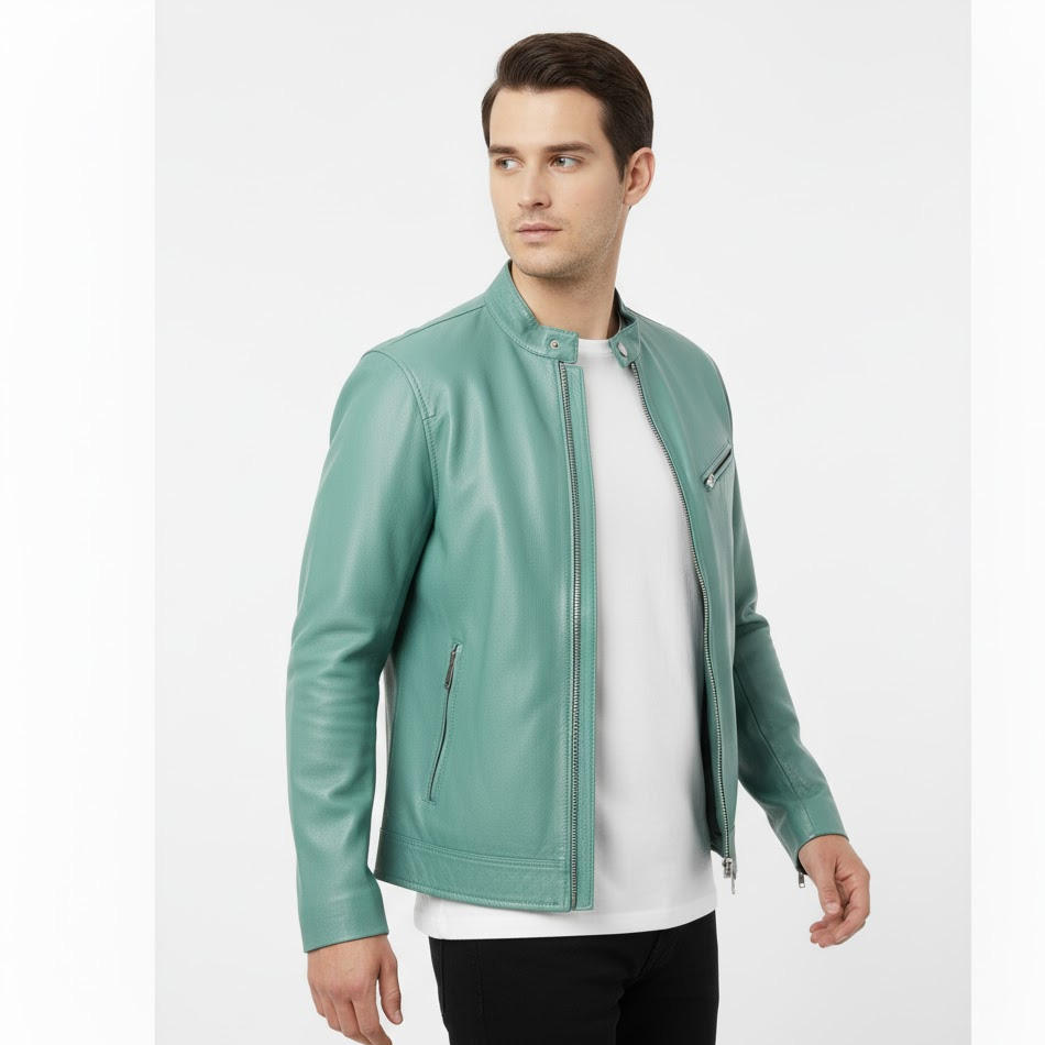 Mens Handmade Sheepskin Biker Leather Jacket OEM Factory Wholesale Supplier Stylish Warm Durable Outerwear Fashion Wear Front