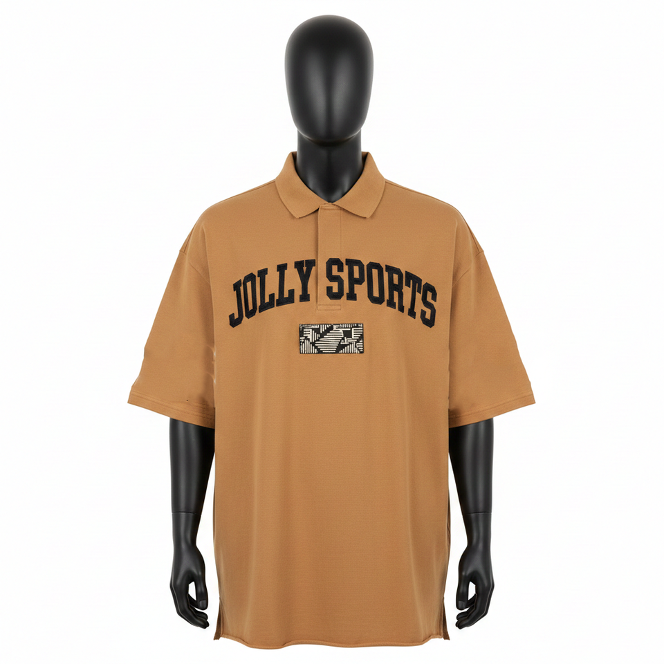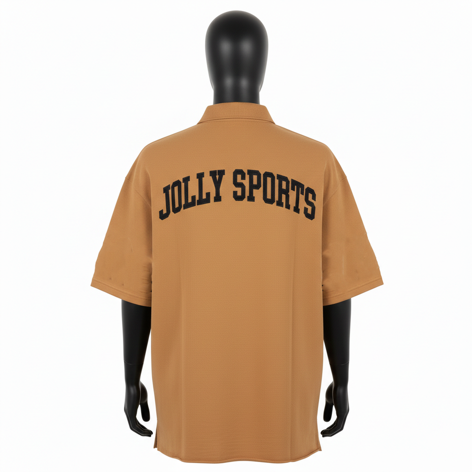 Mens Heavyweight 220 GSM Interlock Knit Polo Shirt Camel Brown Athletic Fit Heat Transfer Logo Custom moisture wicking