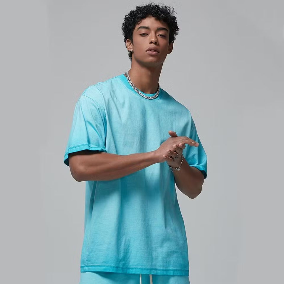 Mens Heavyweight Blank 100% Cotton 320g Oversized Acid Wash T-Shirt | Mineral Vintage Stone Washed Custom Logo Skin-Friendly