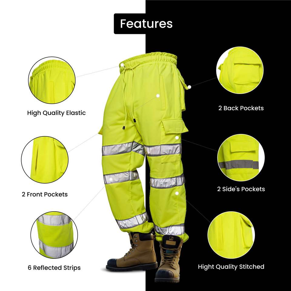 Mens Hi Vis Work Joggers | Reflective Safety Sweatpants Jogging Bottoms | High Visibility Work Trousers for Construction