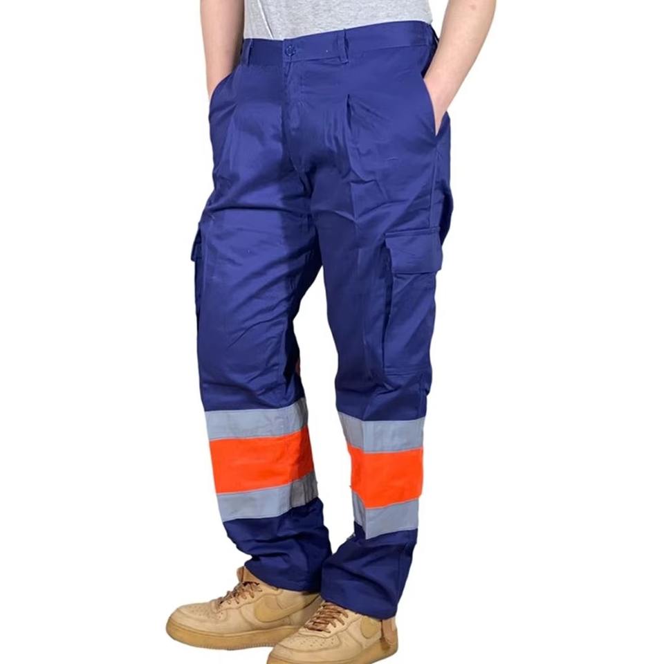 Mens High Visibility Safety Workwear Pants Reflective Trousers Cargo Elastic Waist Drawstring Pockets Casual Hi Vis Work Pants