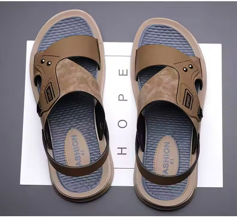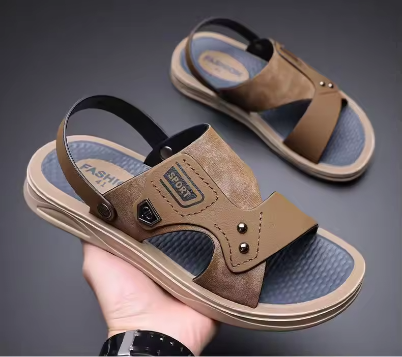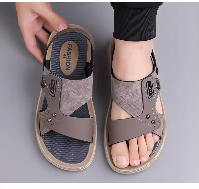 Men's Hiking Heeled Flat Sandals Outdoor Casual Shoes Thick Cushion Genuine Leather Upper Anti-Slip Breathable