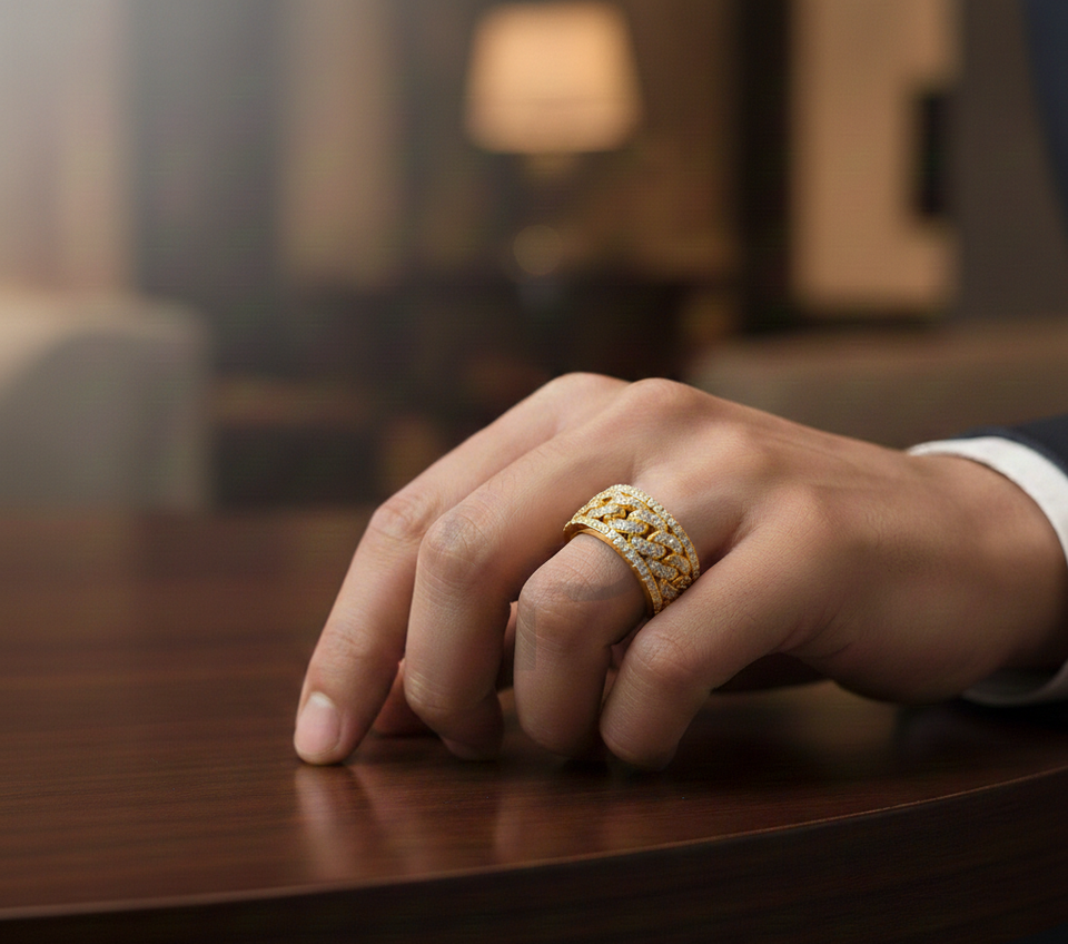 Mens Hip Hop Diamond Ring Iced Out Wide Band Luxury Statement Ring Crafted in 925 Sterling Silver, Solid 10K Gold or 14K Gold