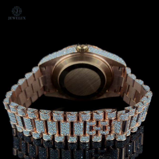Mens Hip Hop Moissanite Watch Full Iced Dial Rose Gold Plated Stainless Steel Band Durable Daily Wear Watch high-quality diamond