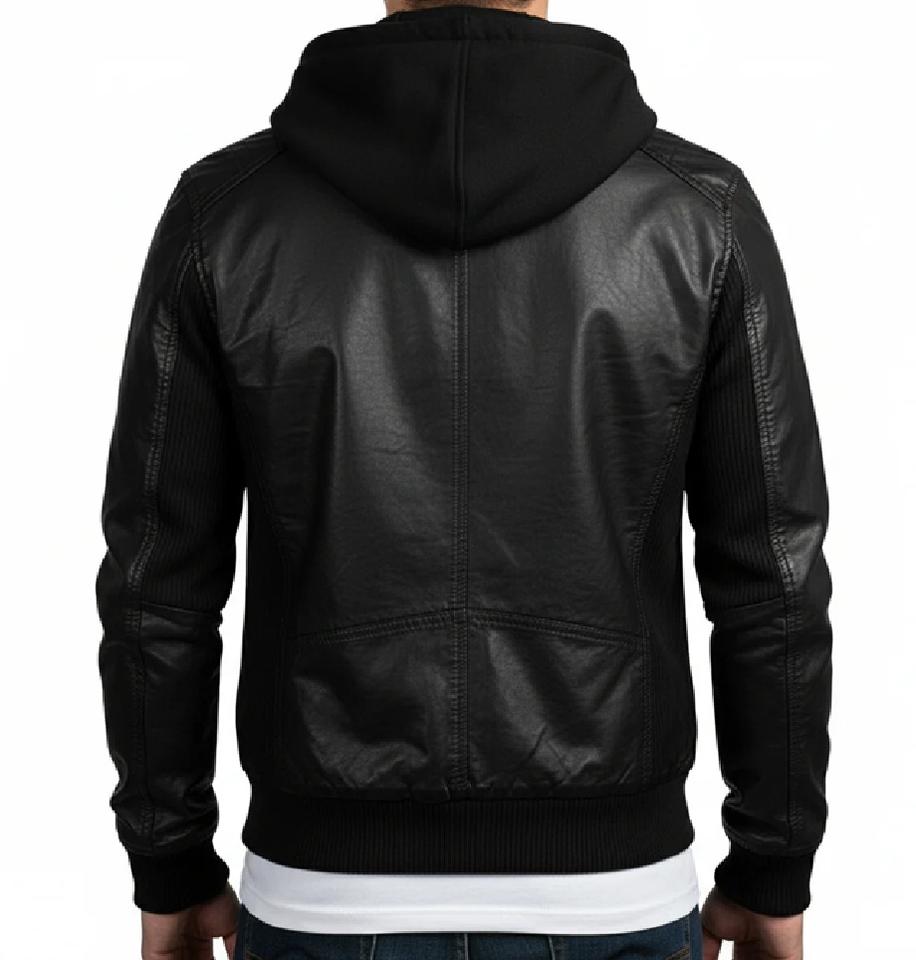 Mens Hooded Genuine Leather Jacket Bomber Casual Hoodie Jacket with Removable Hood Real Leather Biker Fashion Jacket Custom OEM