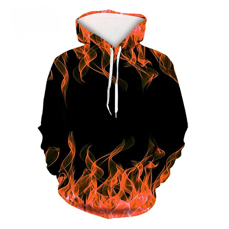 Mens Hooded Sweatshirt Big and Tall 3D Realistic Flame Print Pullover Sweatshirts Drawstring Pullover Hoodie Hip Hop Youth Hoody