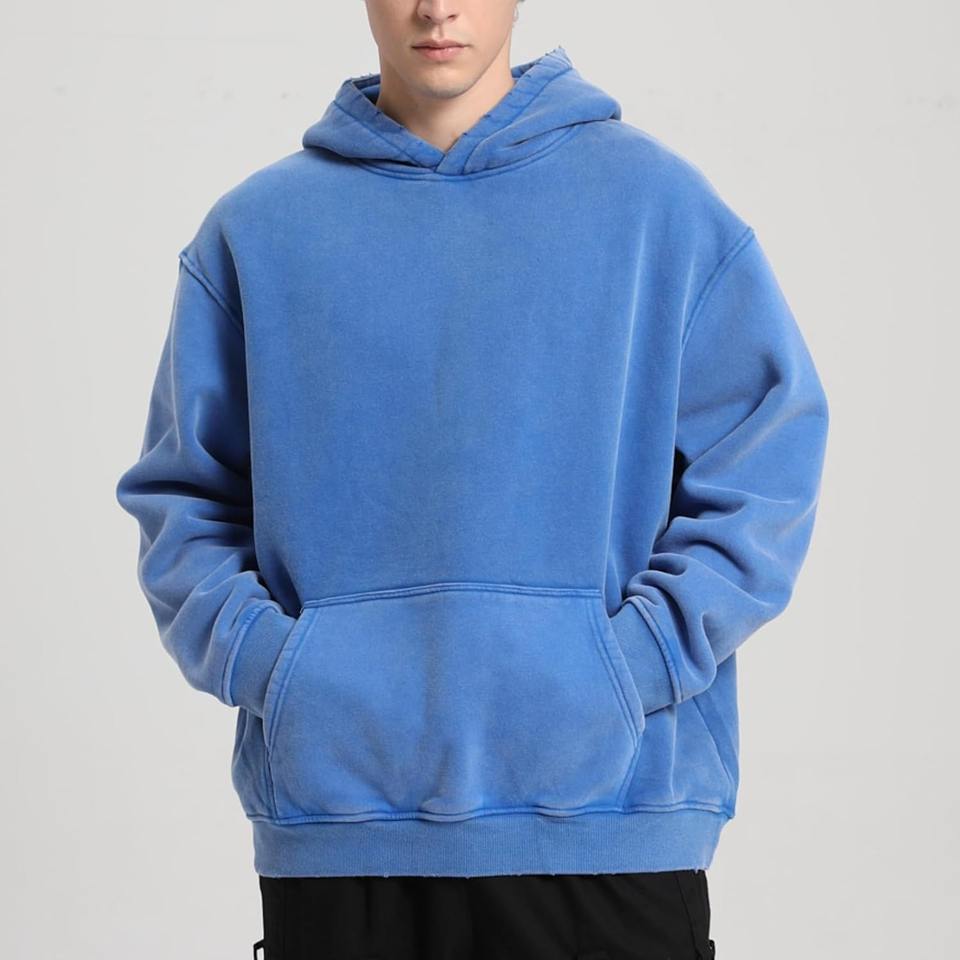 Mens Hoodies Pullover Oversized Acid Wash Bright Blue Hoodie Heavyweight Sweatshirts for Men Couples Vintage Clothes Streetwear