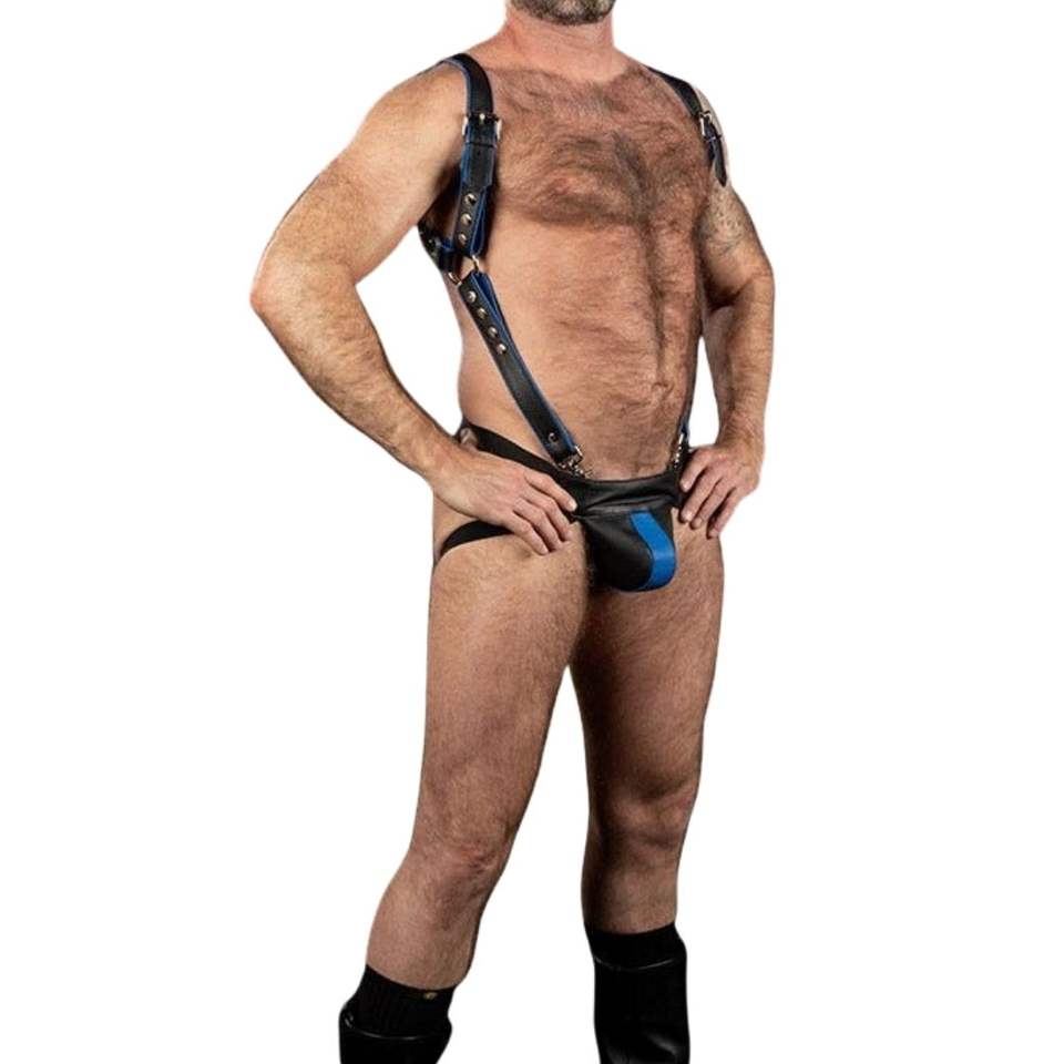 Mens Hunter Leather Harness Blue Adjustable Shoulder Straps Premium Leather Club Wear Body Harness