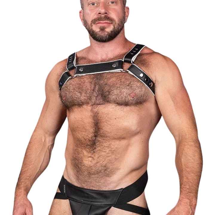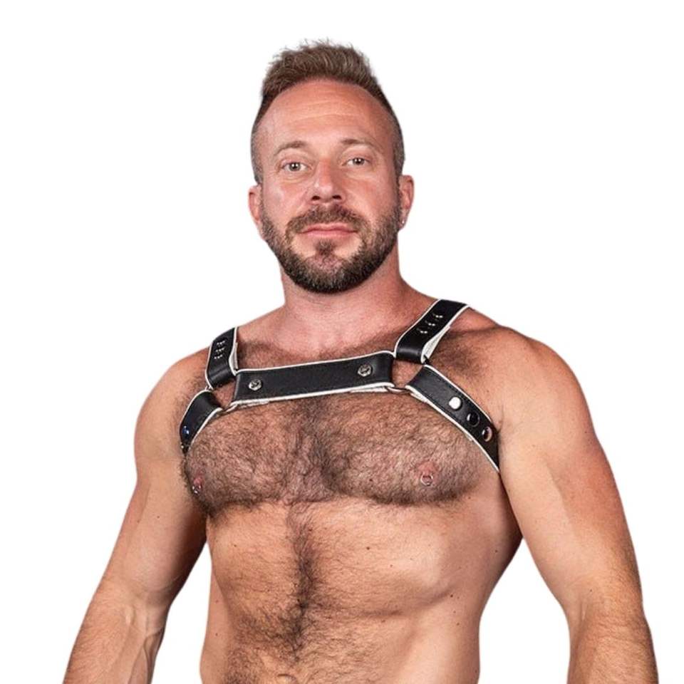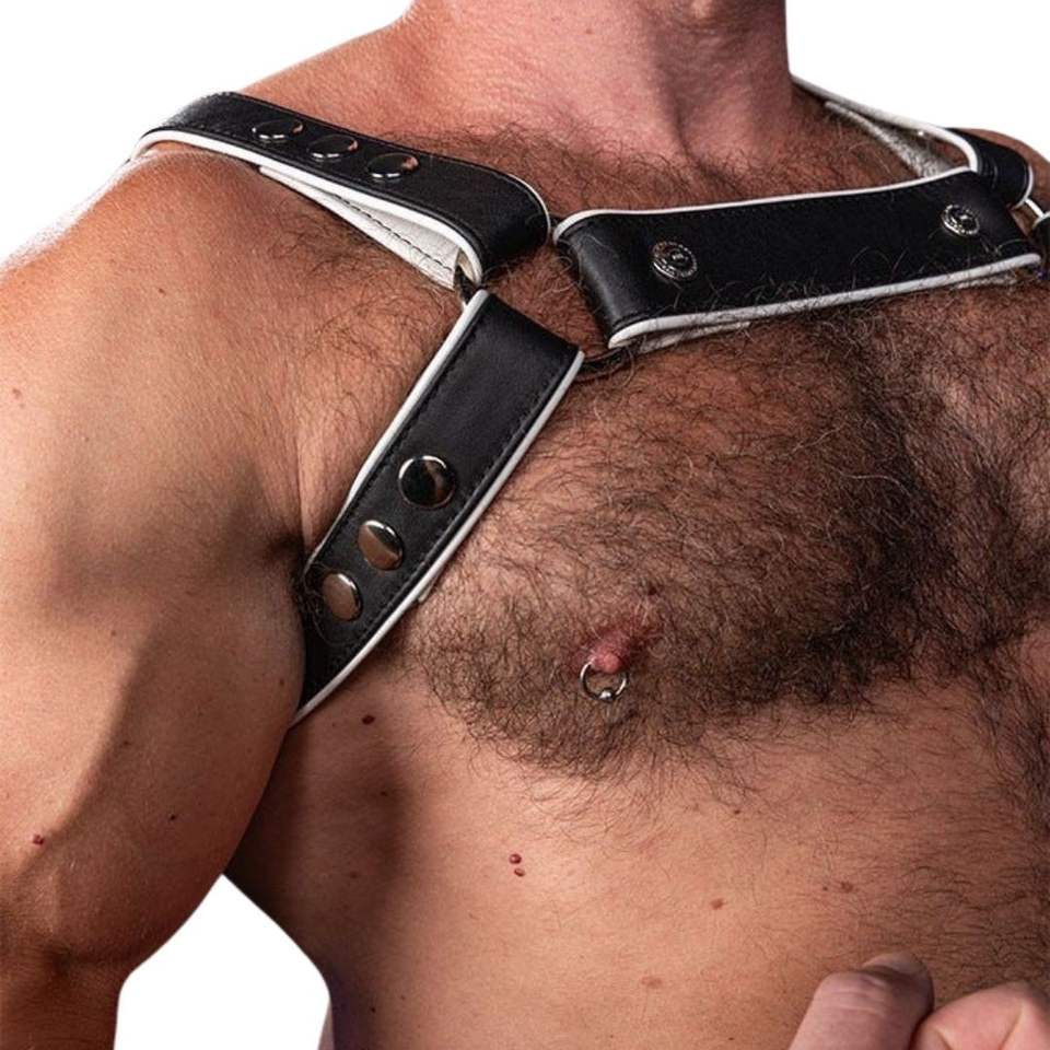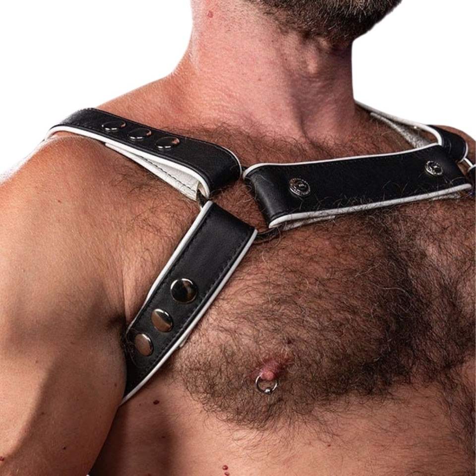 Mens Hunter Leather Harness White Adjustable Shoulder Straps Premium Leather Club Wear Body Harness