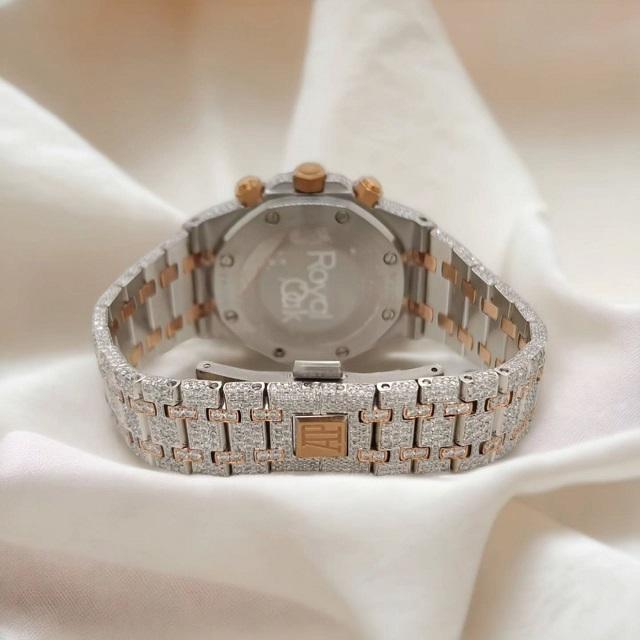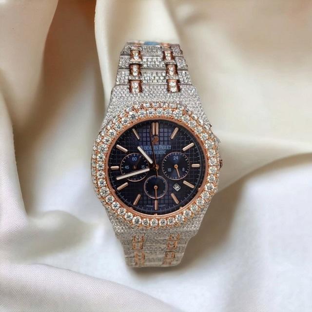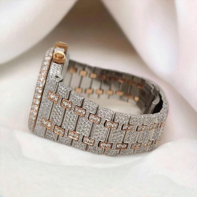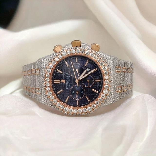 Mens Iced Out Rose Gold Watch Blue Dial Full Moissanite Timepiece Stylish Premium Accessory