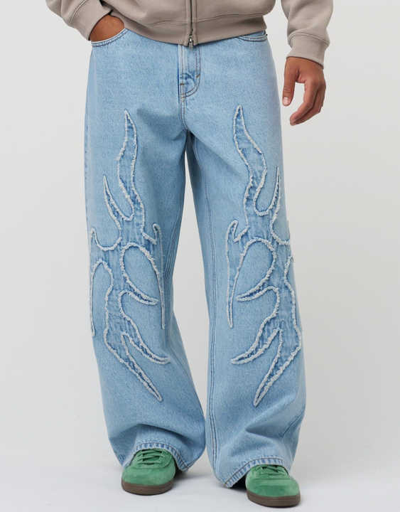 Mens Jeans Brands Straight Stretch Slim Jean Casual Pants Denim Distressed Embroidery Trousers Baggy Jeans Black Blue New Style