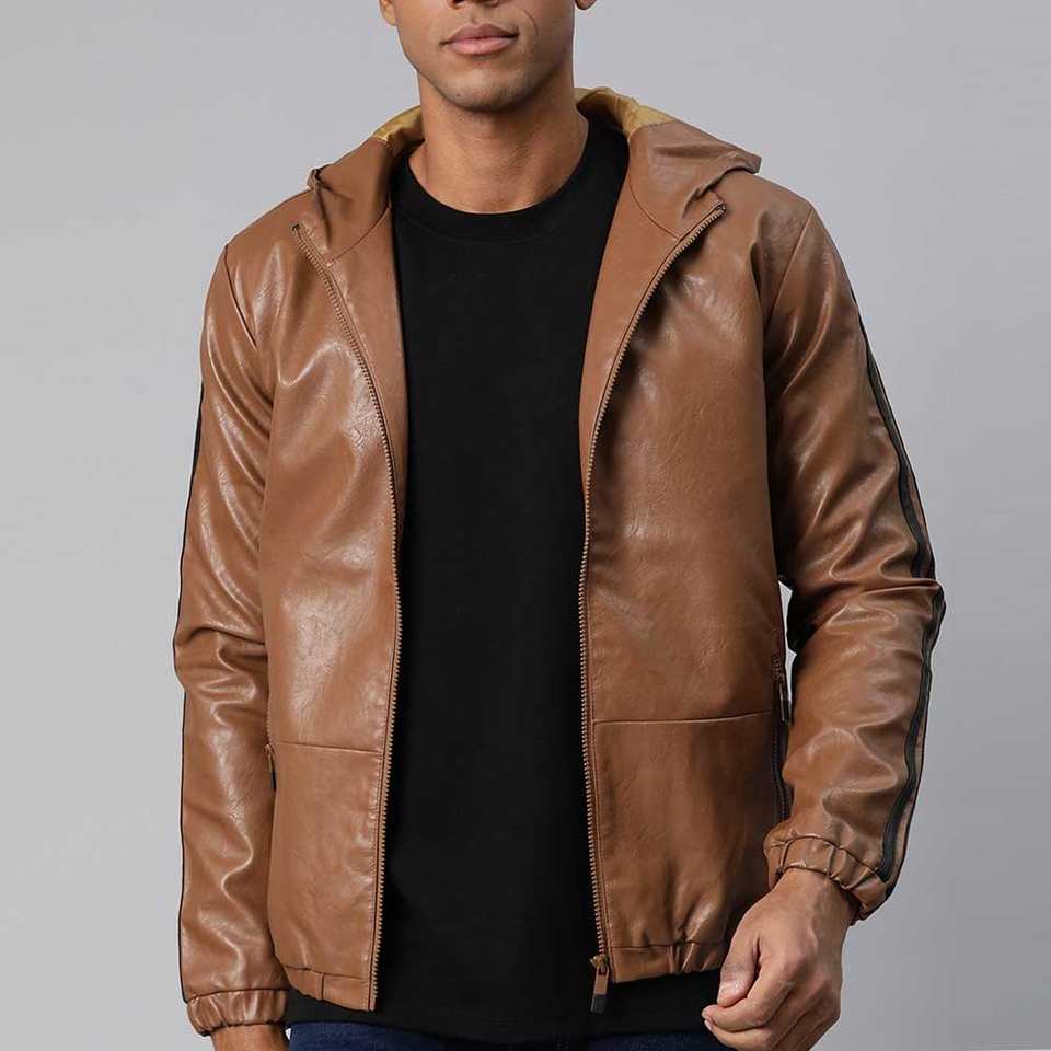 Mens Leather Hoodies Stylish Casual Outerwear For Export Orders Featuring Smooth Leather Feel Warm Comfort And Relaxed Fit
