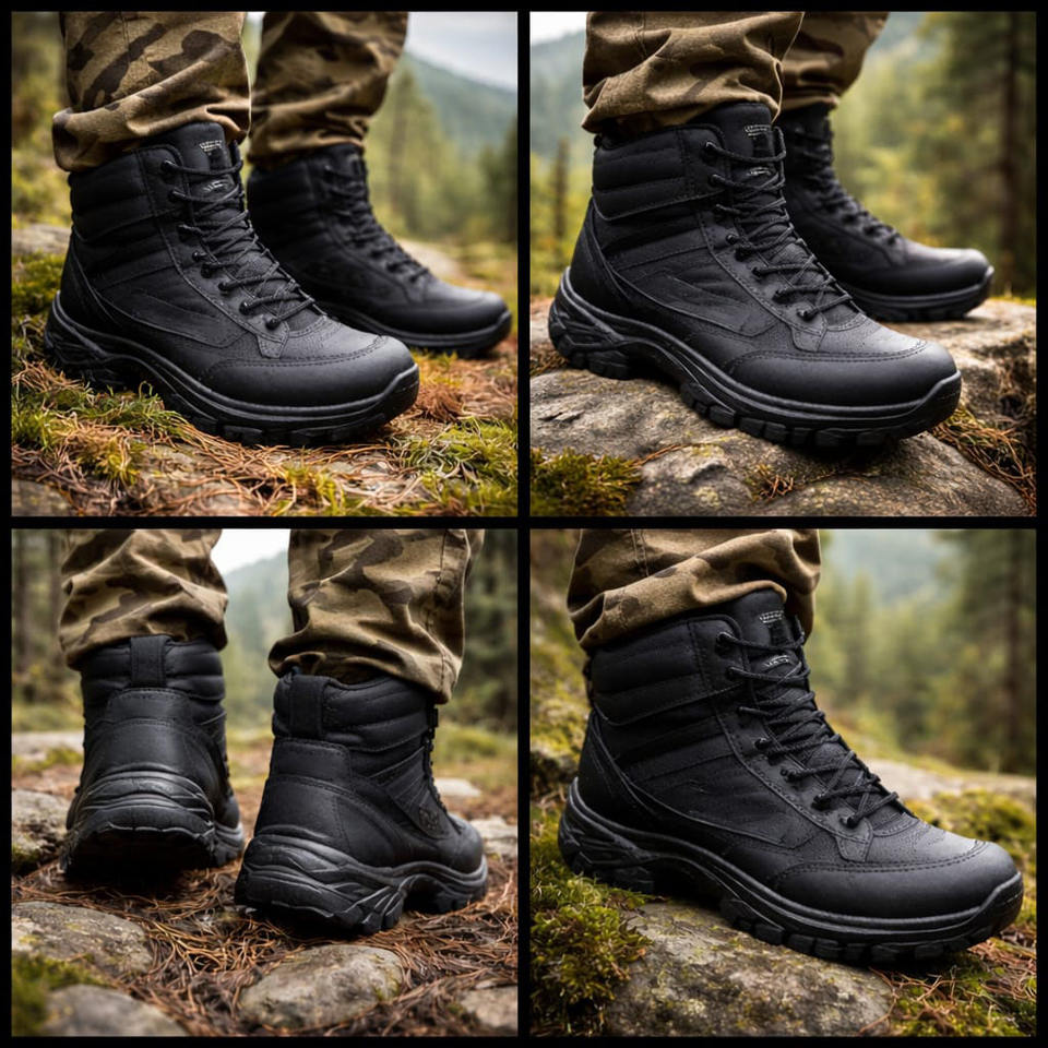 Mens Leather Lace up Work Boots Wide Fit Tactical Style Outdoor Duty Shoes Black & Sand