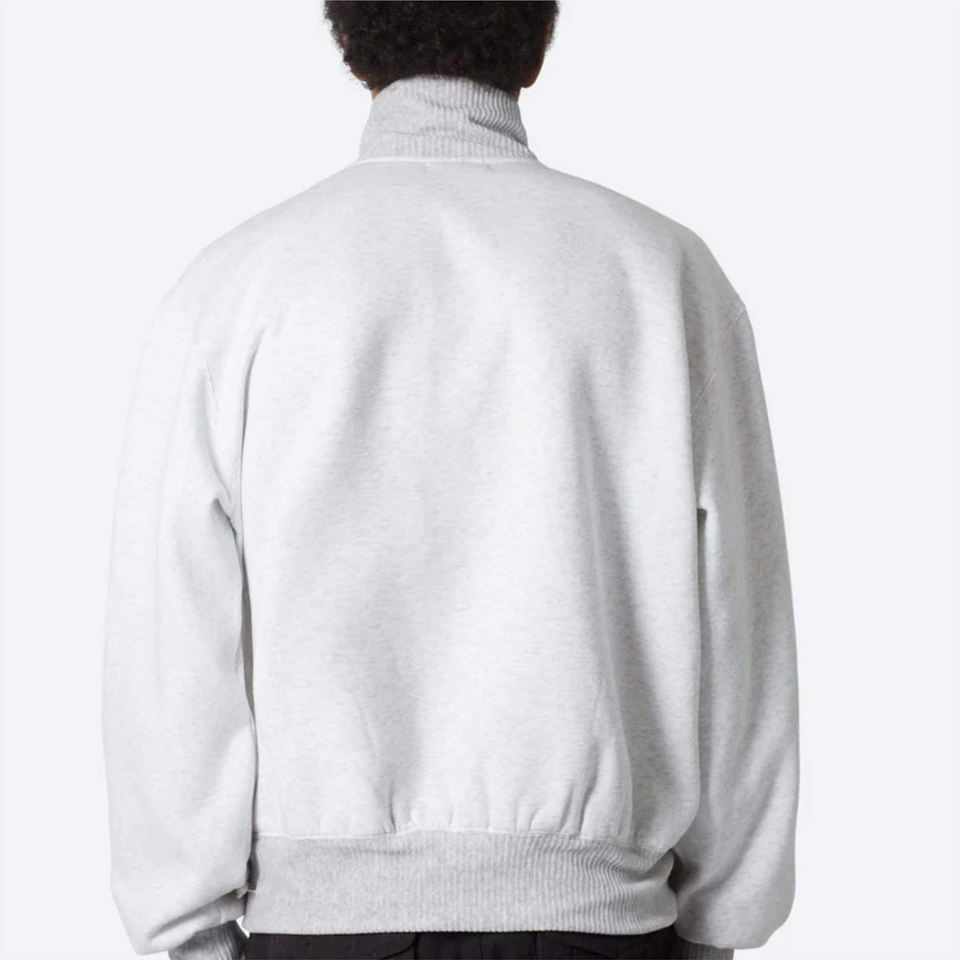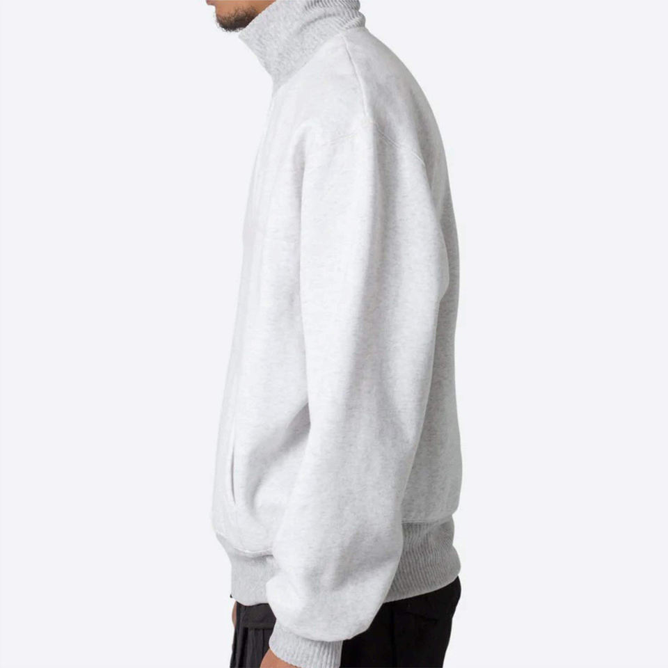 Mens Light Grey Quarter Zip Pullover Sweatshirt Mock Neck Long Sleeve Solid Color Casual Streetwear Top cotton blended