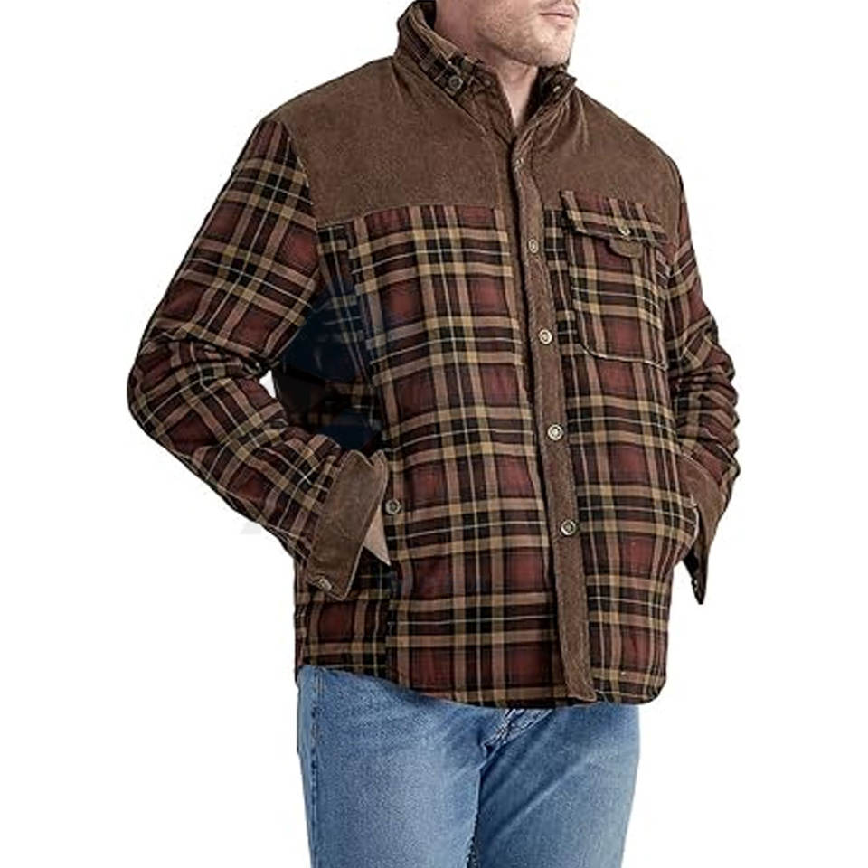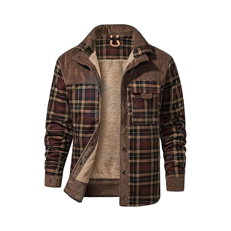 Mens Long Sleeve Sherpa Lined Shirt Jacket Warm Flannel Plaid Fleece Coat Casual Winter Button Up Jacket for Outdoor Work