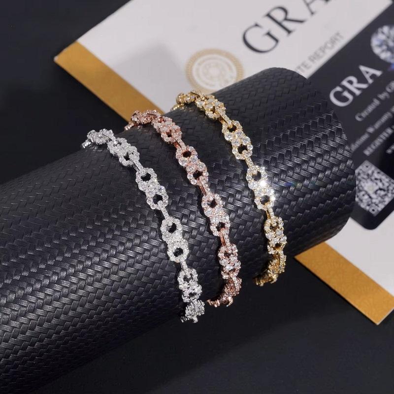 Mens Luxury Moissanite Bracelet Custom 925 Sterling Silver Iced Out Hip Hop Jewelry Diamond Chain Gift