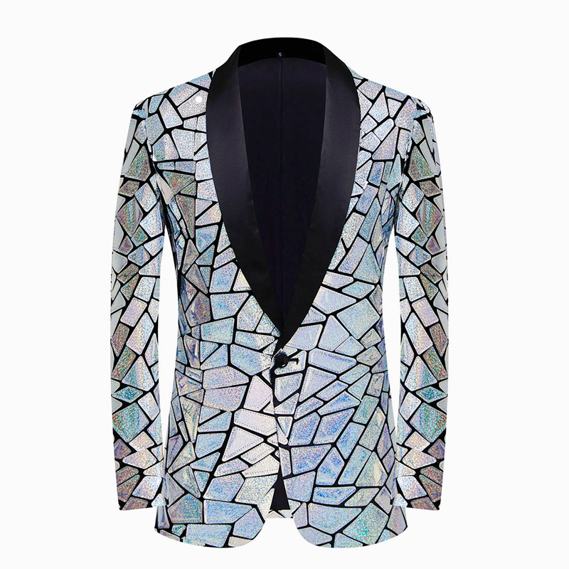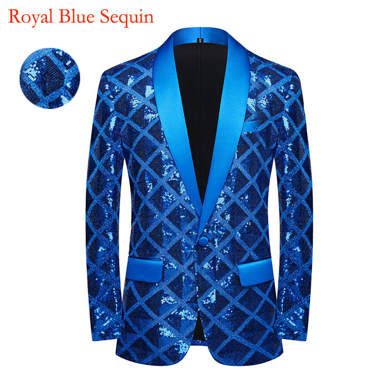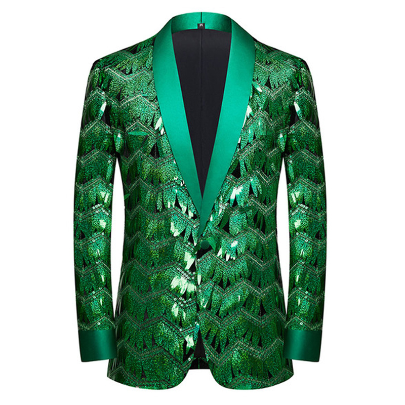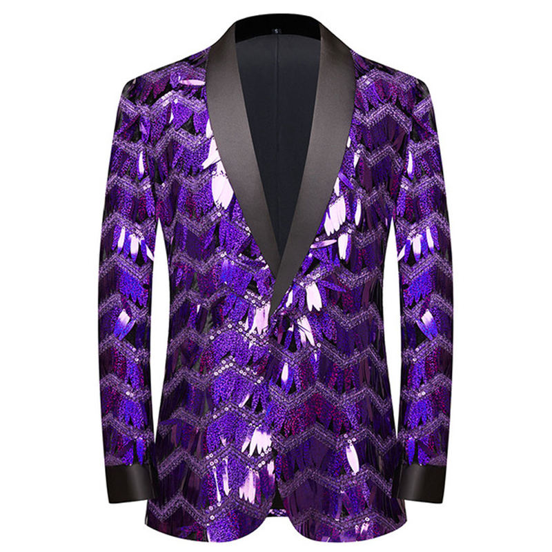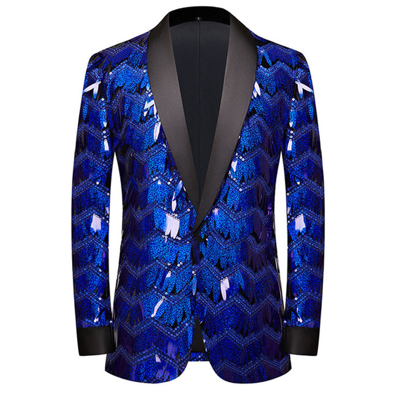 Mens Luxury Wave Striped Gold Sequin Blazer Shawl Lapel One Button Shiny Wedding Party Dinner Tuxedo Suit
