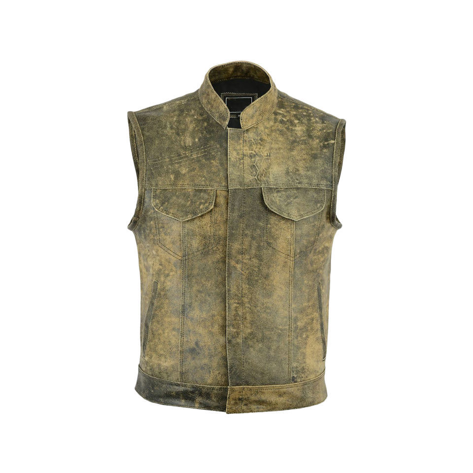 Mens Motorbike Genuine Cow Leather Vest New Fashion Mens Biker Leather Waistcoat Black Vest Motorcycle & Auto Racing