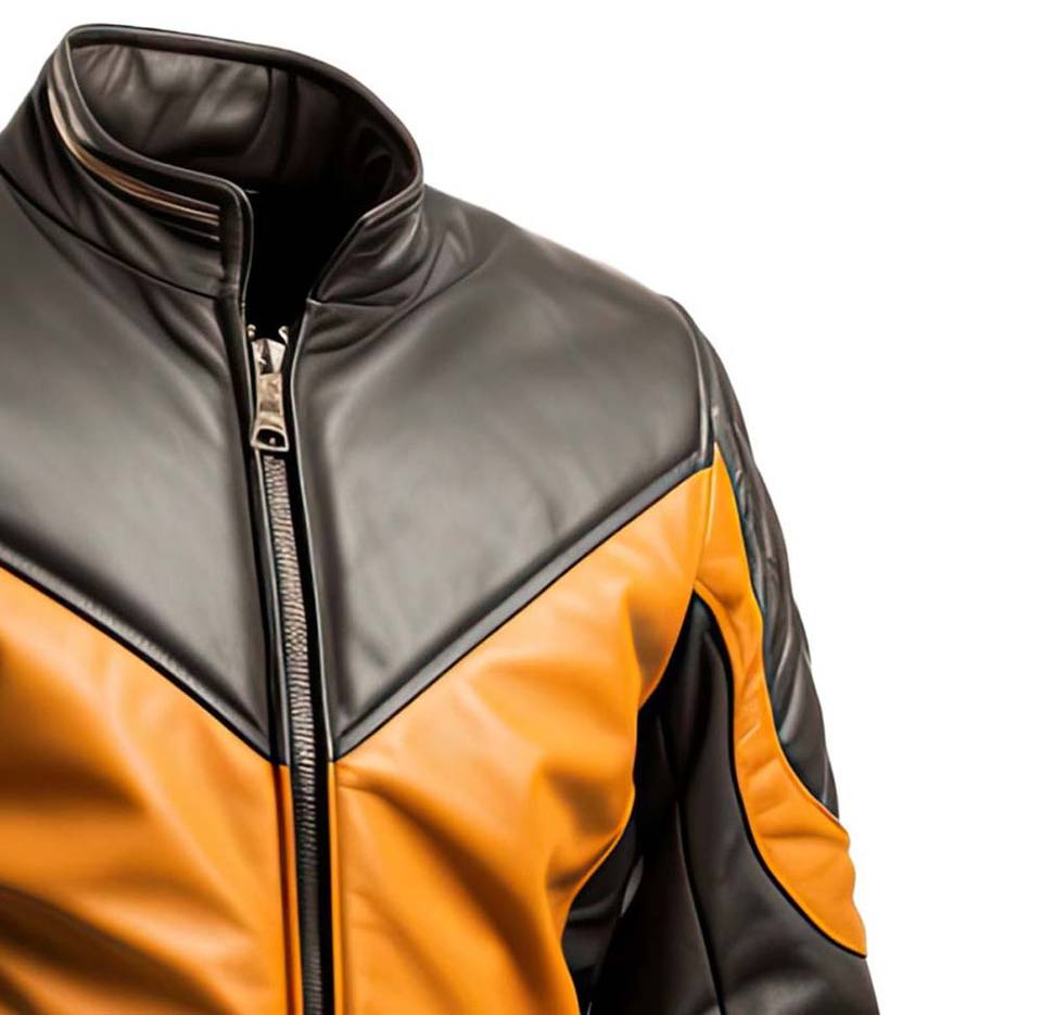 Mens Mustard Black Genuine Sheepskin Leather Jacket Waterproof Breathable Eco-Friendly Fashionable Casual Sports Racer Scooter