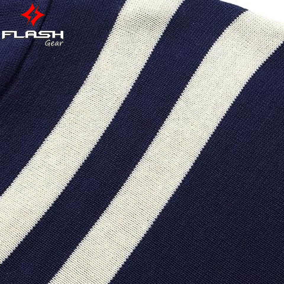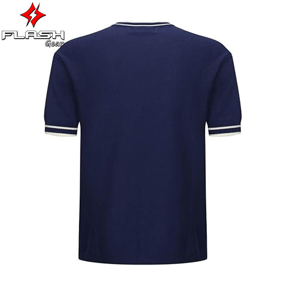 Mens Premium Retro Knitted Shirt Classic Crewneck Short Sleeve Solid Color Bold Double Racing Stripes Vintage Inspired Knit Top
